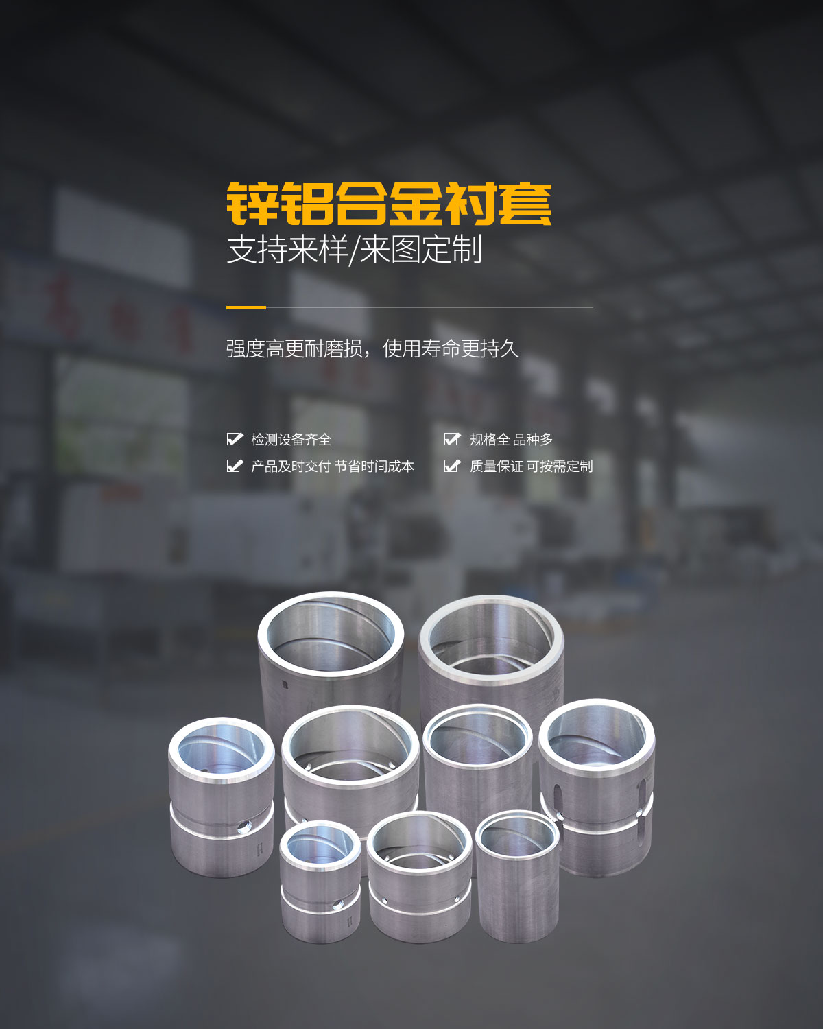 鋅鋁合金作為優(yōu)良的易損材料,自身具有減磨、耐磨性,其對(duì)配磨件的磨損比銅合金小,從而提高了機(jī)械傳動(dòng)零部件的使用壽命,保持了機(jī)械加工精度。延長(zhǎng)了機(jī)械維護(hù)周期,提高了生產(chǎn)效率,對(duì)潤(rùn)滑油的親和性好,且導(dǎo)熱率高于銅合金數(shù)倍,散熱快。能在工作中保持較低的溫度,抗咬合性能優(yōu)良,材料密度低,產(chǎn)品質(zhì)量輕,安裝、維護(hù)容易、方便,具有較高阻尼特性,減震抗噪。